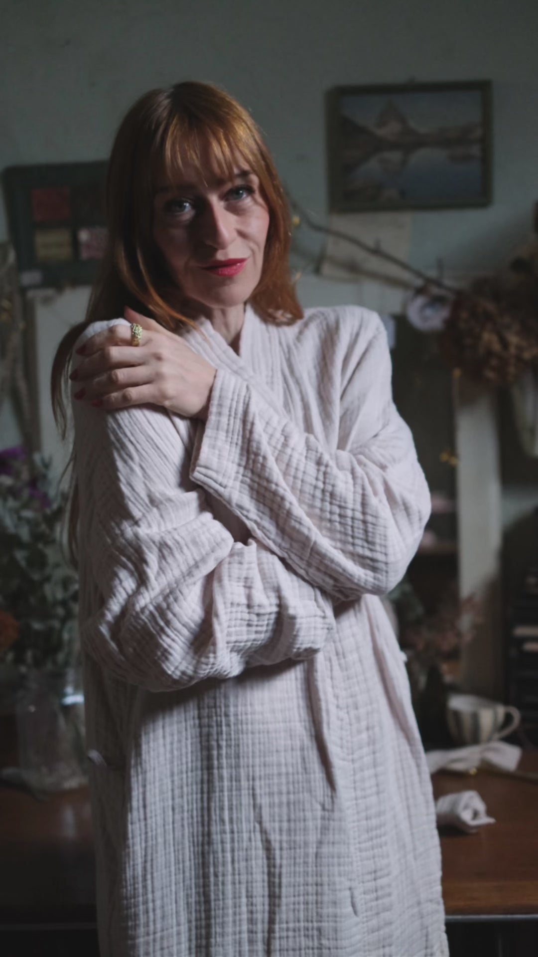 Una nuvola leggera e morbida, un accappatoio vestaglia che diventerà il posto preferito dove avvolgervi.