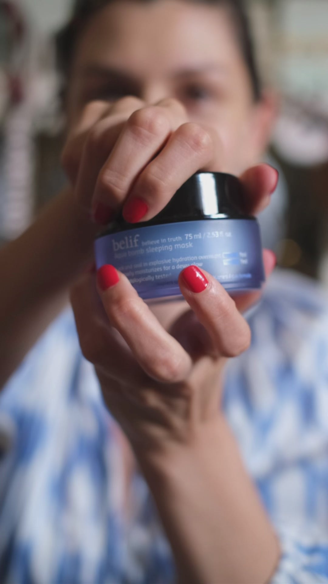 L'Aqua Bomb Sleeping Mask ha una consistenza leggera e rinfrescante, simile a un gel, che si assorbe rapidamente senza lasciare residui grassi o sensazione di appiccicosità. Tutto questo la rende facile da applicare e molto piacevole da lasciare in posa durante la notte.