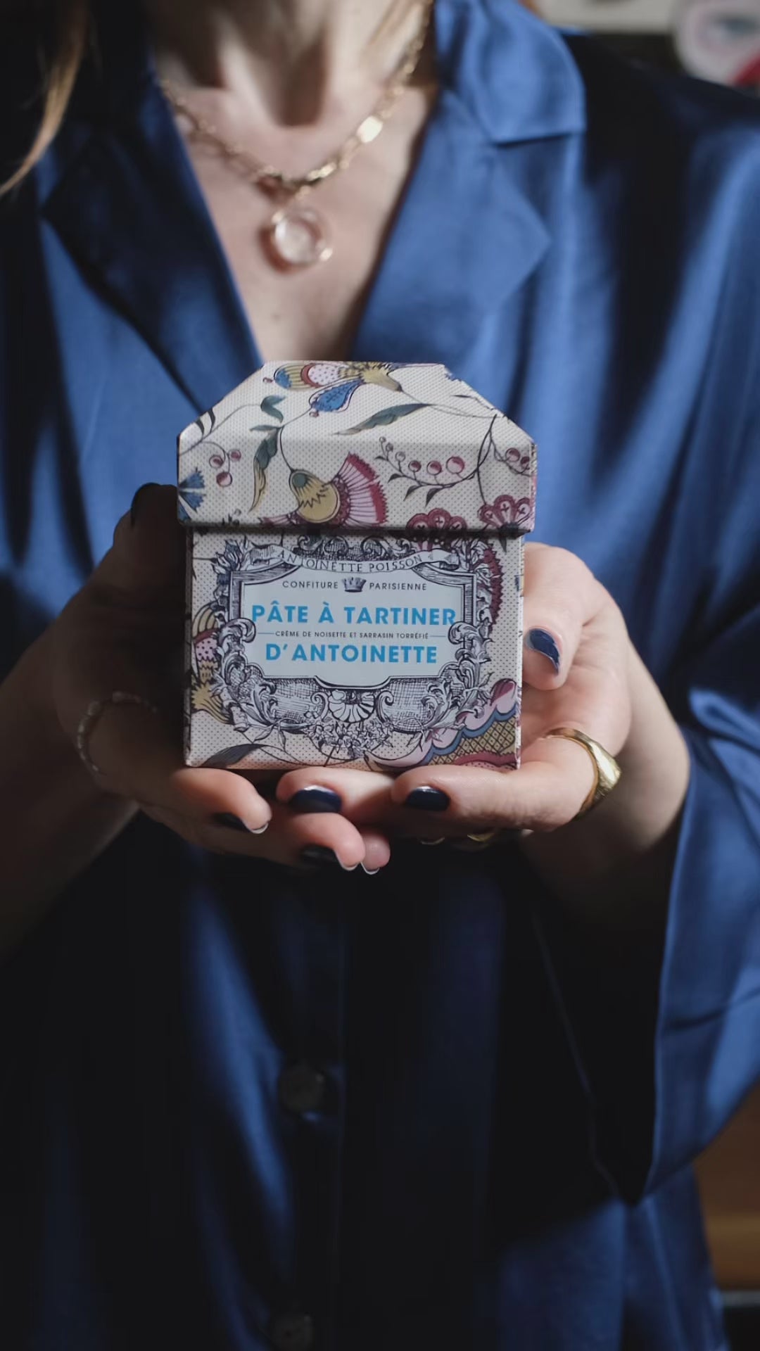 Un barattolo nel suo cofanetto. Non uno qualsiasi: la "Spalmabile di Antonietta".