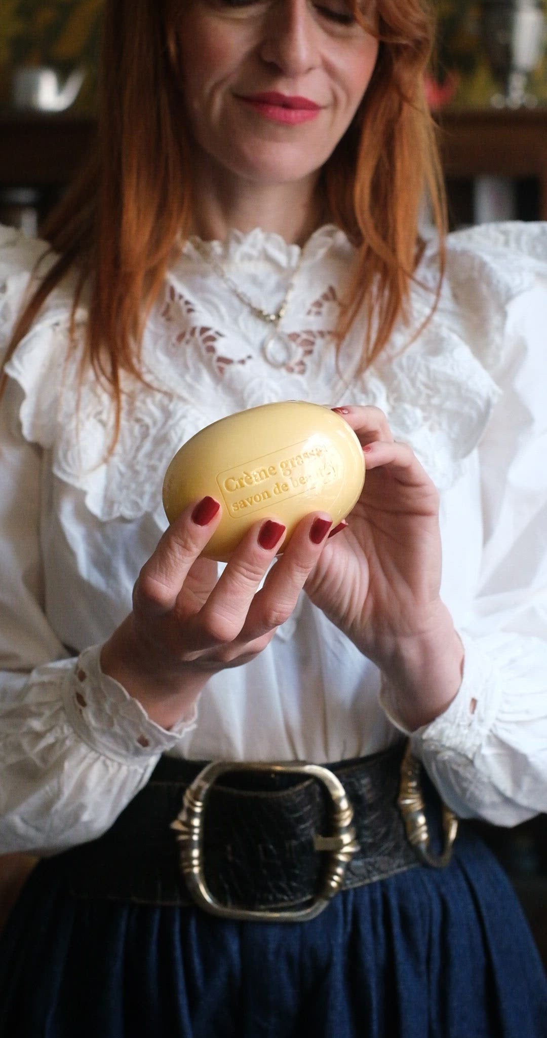 Una saponetta grande e profumata che si dissolve in una schiuma setosa, morbida, divina.