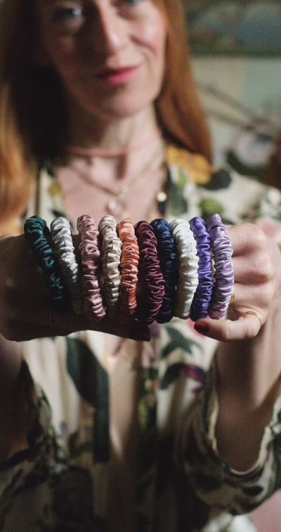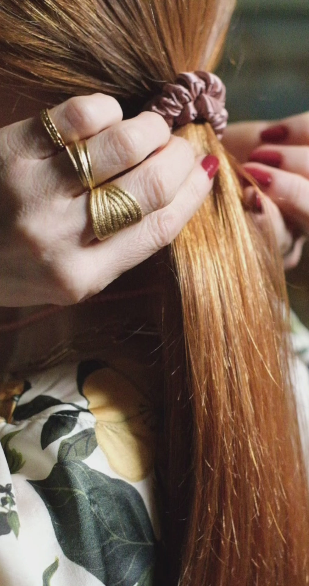 Un elastico di seta fine e discreto che darà un tocco di eleganza alle tue acconciature o ti accompagnerà nel sonno quando vorrai legare i capelli per evitare nodi, frizioni e rotture.