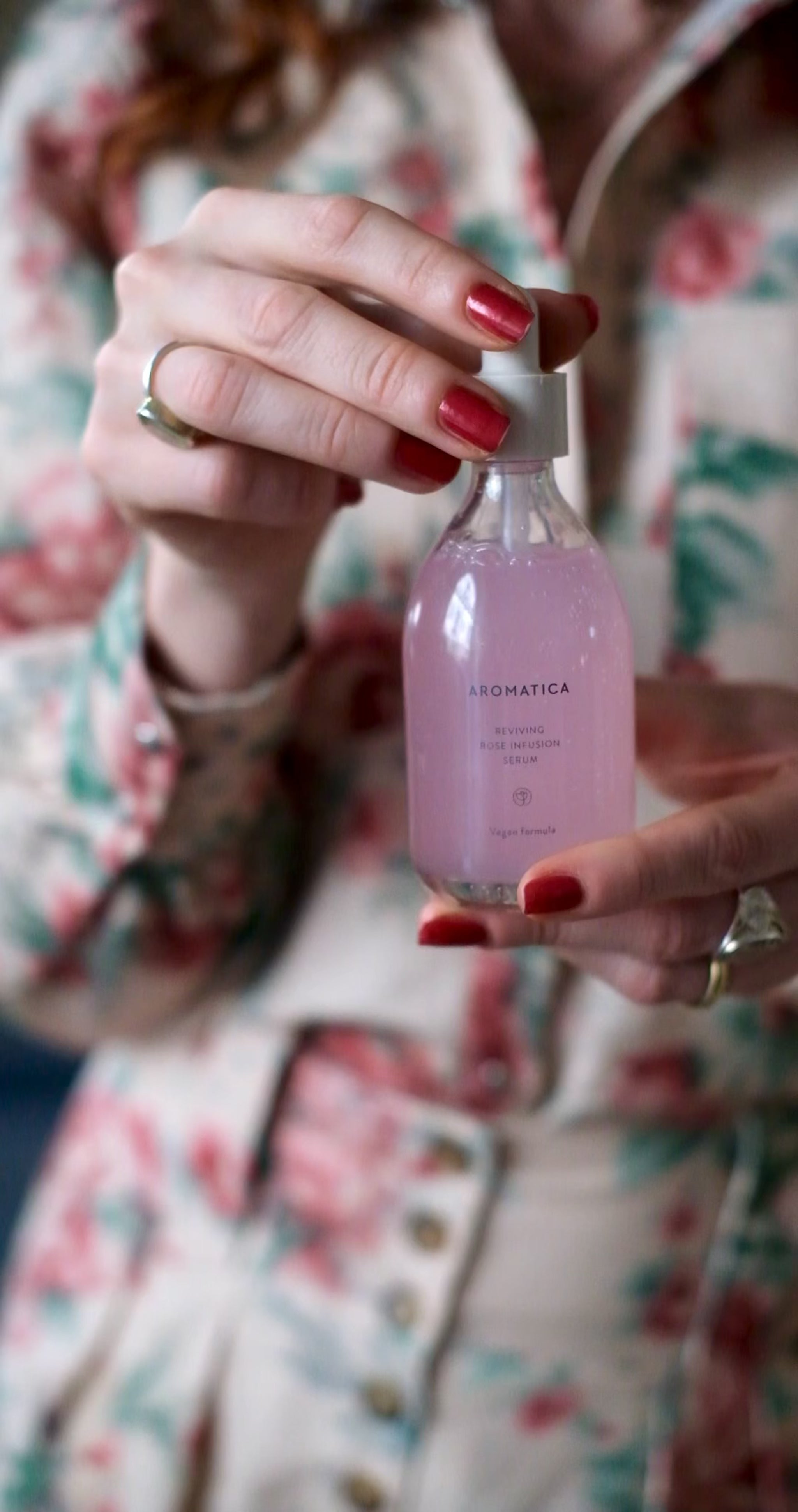 Oltre al 74,4% di aloe vera biologica, il Reviving Rose Infusion Serum contiene estratti di due erbe ayurvediche: il Bhringhraj, lenitiva ed elasticizzane e le foglie di Neem emollienti.